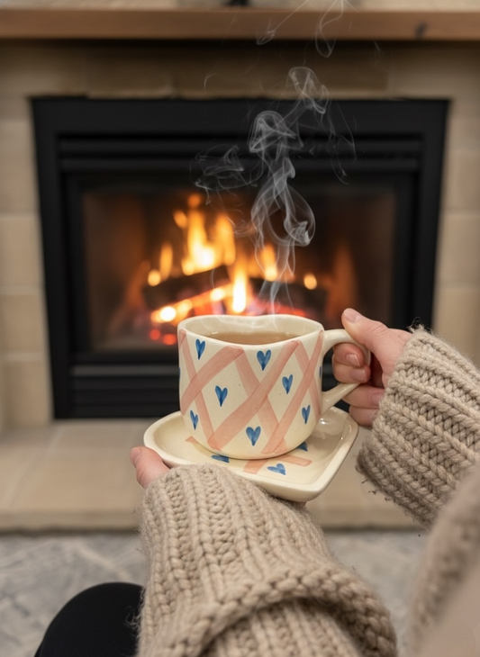 Red Heart Mug & Saucer (Pack of 1)