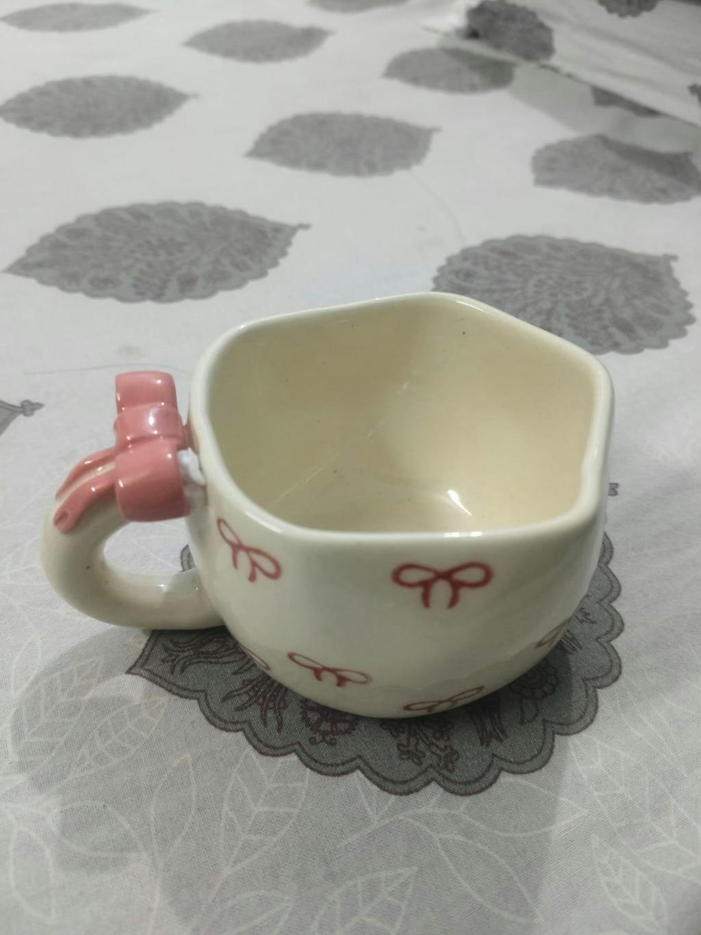 Handcrafted Ceramic Mug with Elegant Bow on the Handle