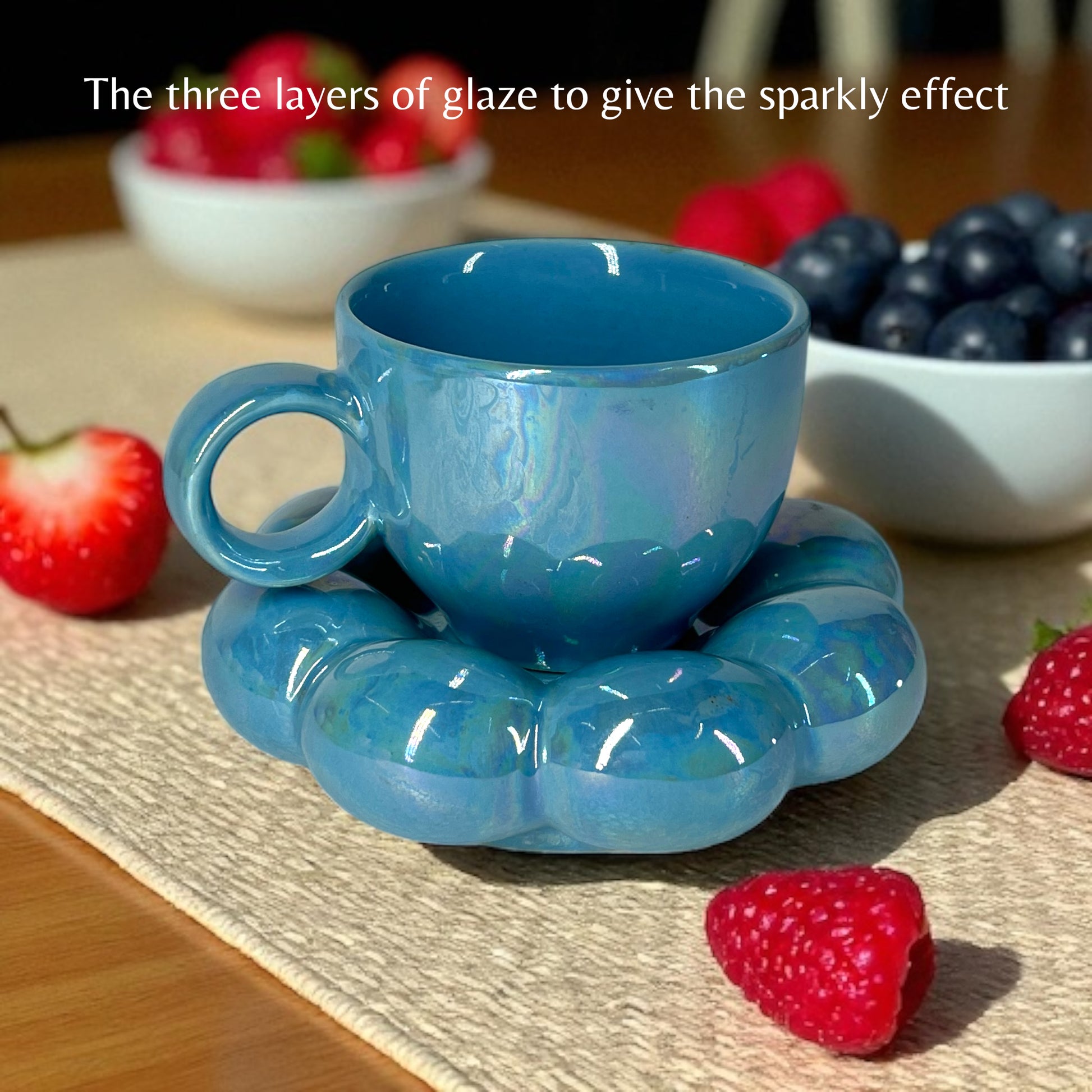 Sparkling Blue Ceramic Mug with Bubble Saucer – 200ml